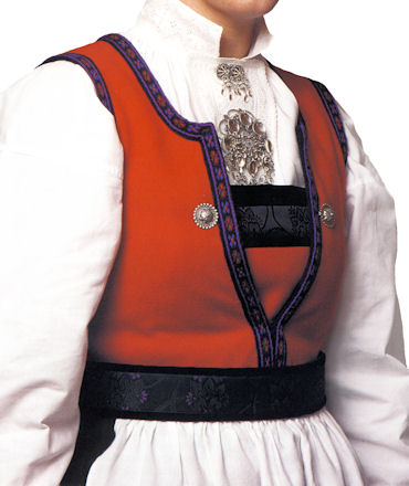 The old costume habits in Kvinherad persisted until the early 1900s. Over the years it had changed from a colorful costume into a darker one. Shortly after 1945 a wish for the resurrection of the old, colorful costume arose. The new bunad was based on several old conserved costumes. It has several common traits with bunads from neighboring areas, and is today made in several editions with different combinations in fabric and ribbons. Different types of silver can be used for this bunad. The silver can be gilded, bright or oxidized, and often with colored stones. For the festive costume, gold-plated silver is mostly used, while the winter costume has the oxidized version of the silver.