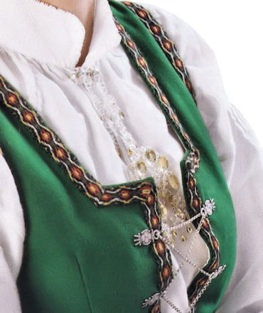 As in many other places, work on the Nordfjord bunad began in the 1920s. Costume material was collected and used as a starting point. The bodice is made of wool and comes in different colors: green, red, blue and black.