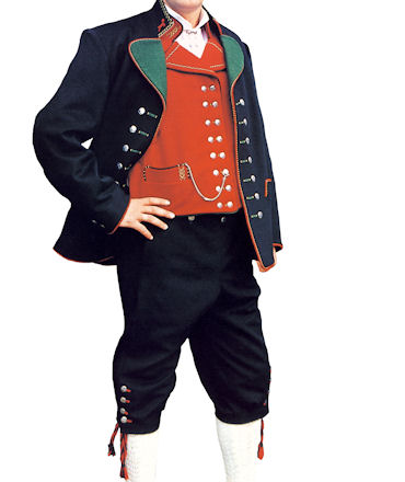 - Shoe buckles, a bunad knife and watch with a watch chain complete the bunad
