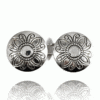 Arm buttons with a distinctive 4-leaf rose pattern.