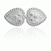 This bag clasp is cast in brass and oxidized, as they traditionally were.