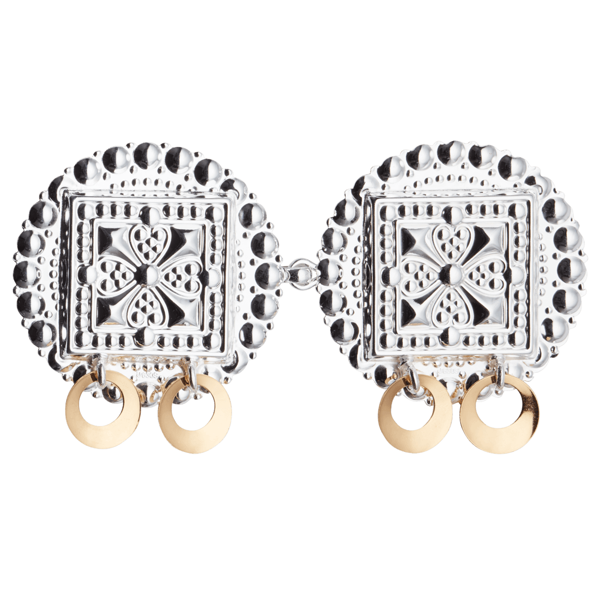 Belt buckle Follo for leather strip with gilded ring leaves, white