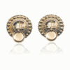 This red stone belt buckle measures 3 x 3 cm and has 2 hanging bowls.