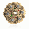 8 cm in diameter. The bowl brooch is antique gold-plated, with oxidized rosettes on the six large bowls.