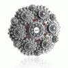 8 cm in diameter. The boles are oxidized and have antique gold-plated rosettes on the six large boles.