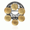 This bowl brooch is 7 cm wide, has red stones and 9 gilded bowls.