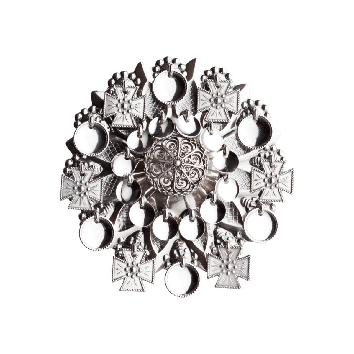 Face brooch with ripples, oxidized