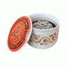 The box has a fabric cushion on the inside and is decorated with patterns from the national costume.