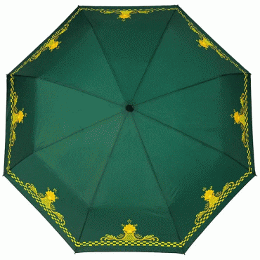 This green umbrella has a pattern that matches the Romeriksbunad, the umbrella can be fully folded and comes with a pull.