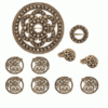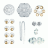 Neck button no. 7, heart loop no. 3, 4 pairs of templates no. 2 with bowl, hose loop no. 2, ball loop no. 3, arm buttons no. 4, template lip no. 2 and buckle no. 1.