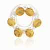 This slightly heavier brooch has 6 bowls and filigree with a red stone in the middle.