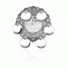 The children’s brooch measures 3.5 cm and has 6 bowls with a red stone in the middle of the brooch.