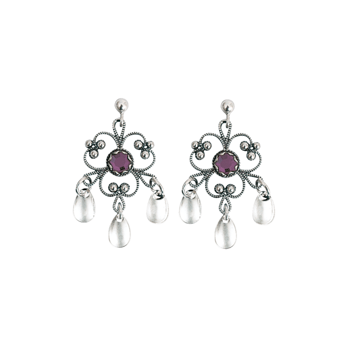 Earrings with purple crystal, oxidized