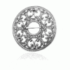This slightly heavier brooch has 6 bowls and filigree with a red stone in the middle.
