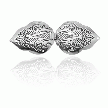 Oxidized (dark) silver buckles measuring 7 cm from tip to tip. Supplied as a pair.
