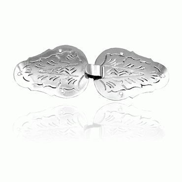 Oxidized silver buckles measuring 6.7 cm from tip to tip. Supplied as a pair.