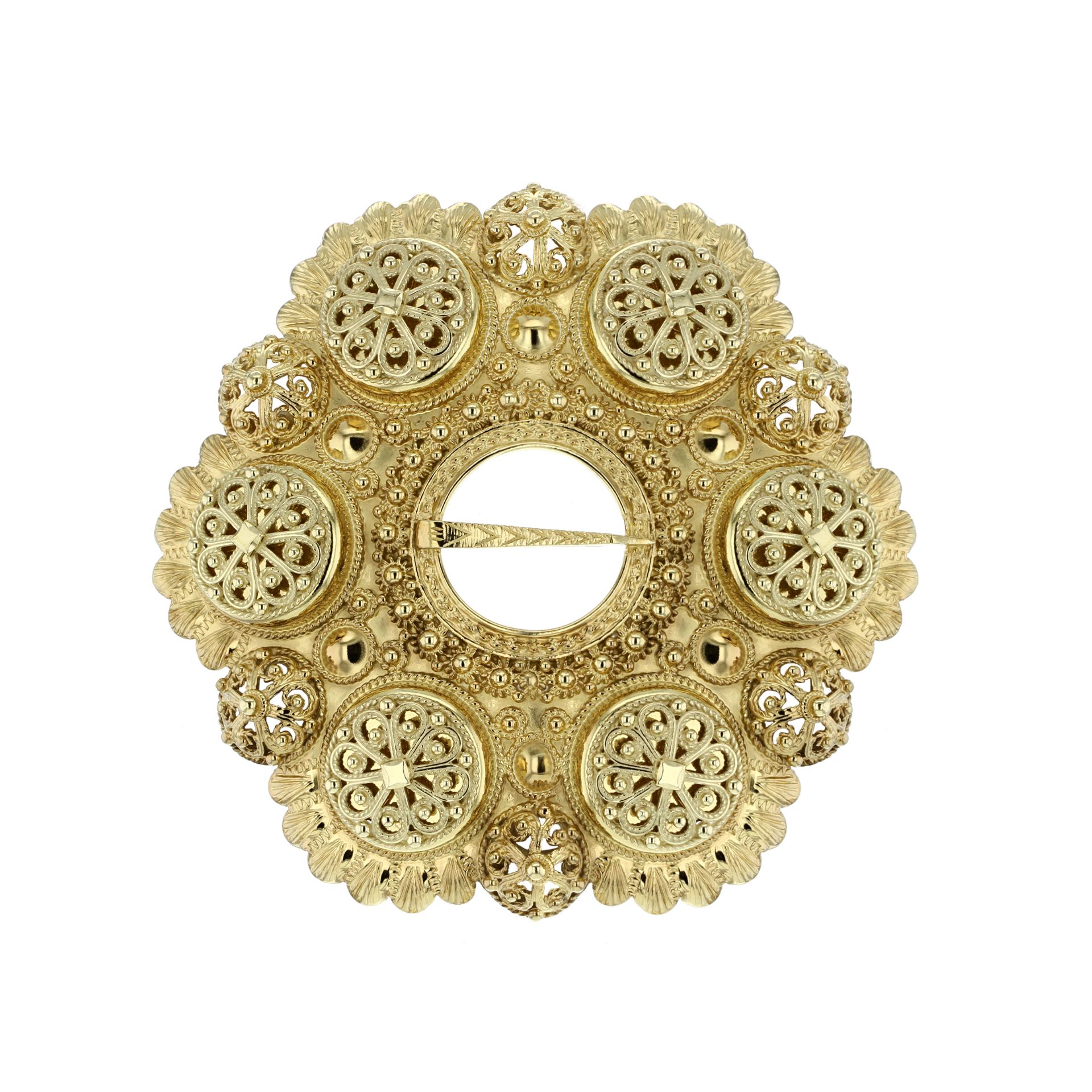 Large ball brooch with engraved edge, gold plated