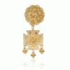 This is a neck pin made of double 4-leaf rosebud that has crushed leaves with small bowl leaves hanging from it.