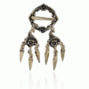 This neck pin is like two filigree buttons next to each other, and with a pendant.