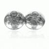 This neck pin consists of two composite buttons with bowls, filigree pendants and drip leaves.