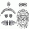 This package contains arm buttons no. 66 oxidized, neck pin no. 39 oxidized, ring brooch no. 9 oxidized, belt buckle no. 34 oxidized and bag lock no. 19 oxidized.