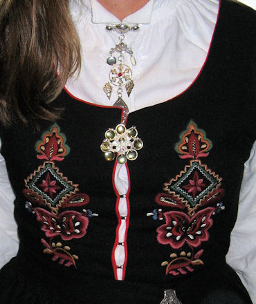 There are many women's bunads in Sunnmøre, all of which have a long history and a number of common features. They are all embroidered on wool fabric, and the cut is largely the same, with the exception of the bunads from southern Sunnmøre and Vigra.